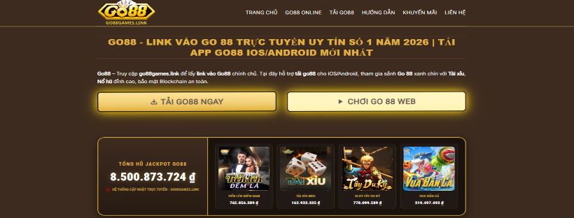 Go88 - Cổng game bài đổi thưởng uy tín 2026. go88games.link cung cấp link vào Go 88 không bị chặn, hướng dẫn tải Go88 app iOS/Android. Trải nghiệm Tài xỉu, Nổ hũ cực xanh chín.